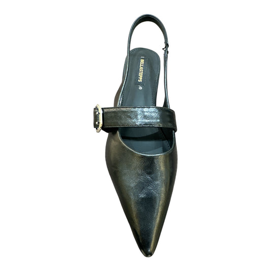 Pointed Toe Slingback with Buckle Strap Mule Flats - Black